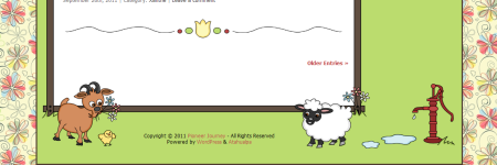 Once again I forgot to take a before shot to go with the after. This design is based off of the free Atahualpa theme. LaDonna from Pioneer Journey wanted something whimsical and cartoonish to represent her family's transition to a pionner lifestyle. Here is the after shot: